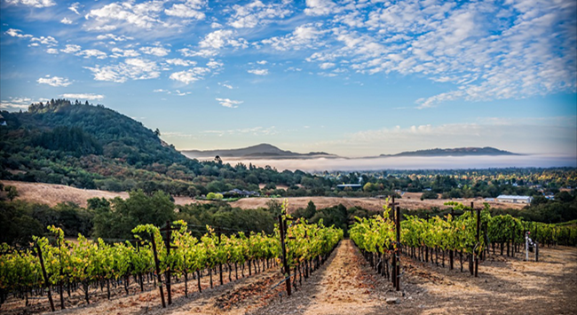 美國的納帕谷產區坐落于加利福尼亞州的圣帕布羅灣(San Pablo Bay)以北,位于北緯39°左右,氣候較為炎熱。加利福尼亞洋流帶來的降溫作用調節了緯度帶來的過高溫度,使納帕谷擁有赤霞珠生長的理想氣候。