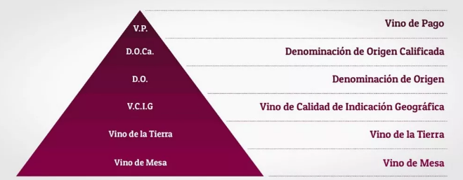 根據(jù)上面的圖片,我們可以看到,西班牙葡萄酒可以粗分為三個(gè)大的級別,他們由高到低分別是: