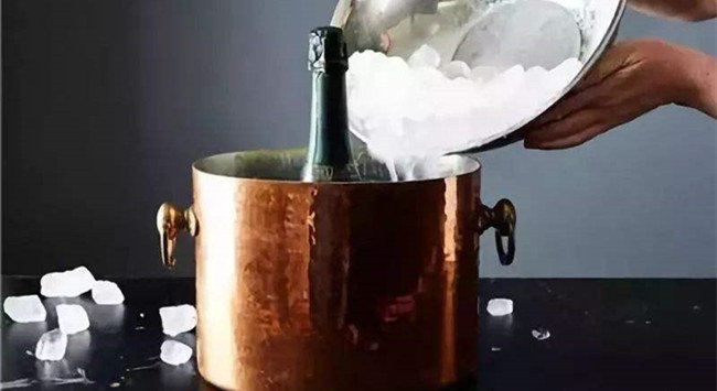 無論是起泡酒還是桃紅葡萄酒,用裝有冰塊和冰水的冰桶來冰鎮葡萄酒是一個經典的冰鎮好方法。冰鎮葡萄酒時只需在冰桶中裝好足夠多的冰塊和水,讓冰水混合物漫過酒瓶的瓶頸,就這樣冰鎮20分鐘即可。