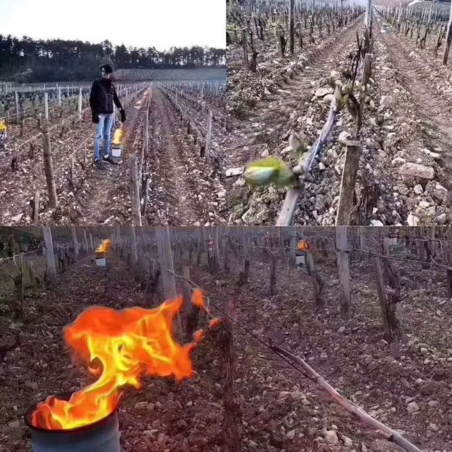 為避免已經開始發芽的葡萄遭受低溫侵害,數以百計的人們在葡萄園內用草生火,并使用燃燒的火盆來抵抗霜凍。