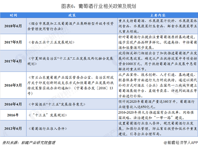 行業發展初期,我國葡萄酒行業由于各方資金蜂擁而入,不少葡萄酒企業十分浮躁,國外進口酒以次充好、國產酒披上洋外衣、仿冒國產知名品牌現象越來越多,行業非常混亂。2012年6月,國家工信部出臺了《葡萄酒行業準入條件》,設置葡萄酒行業準入條件,規范葡萄酒行業發展,引導企業合理布局。