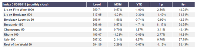 • 廣泛優質葡萄酒市場8月上升 0.5%